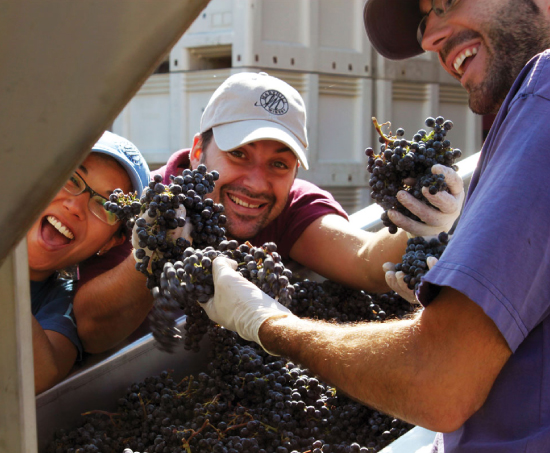 Grapes are harvested during the cool hours of the morning to preserve bright fruit notes.