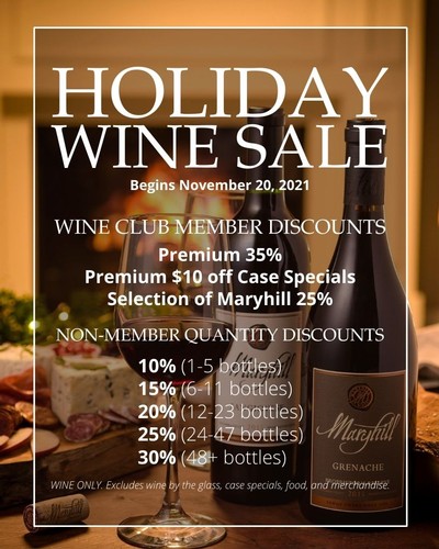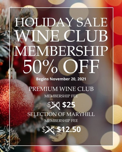 ANNUAL HOLIDAY WINE SALE & 50% OFF CLUB MEMBERSHIP FEES begins November 20, 2021